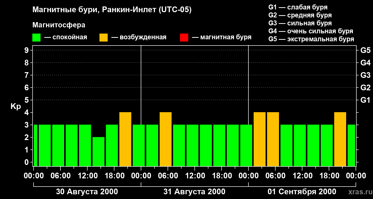 Магнитные бури в Ранкин-Инлете 1 сентября 2000 года