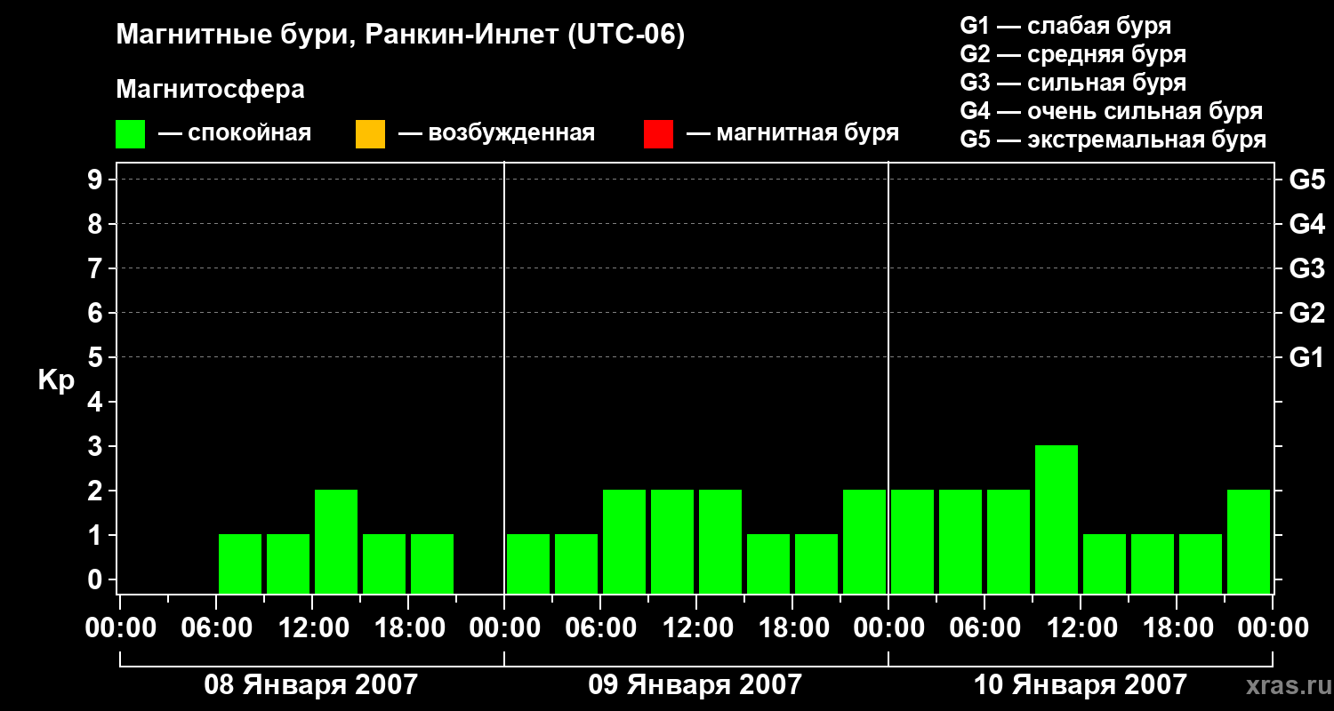 Магнитные бури в Ранкин-Инлете 10 января 2007 года