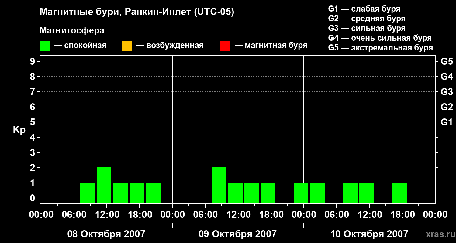 Магнитные бури в Ранкин-Инлете 10 октября 2007 года