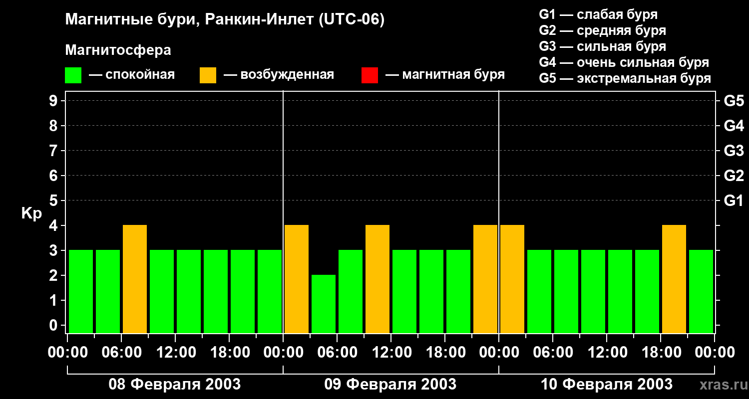 Магнитные бури в Ранкин-Инлете 10 февраля 2003 года