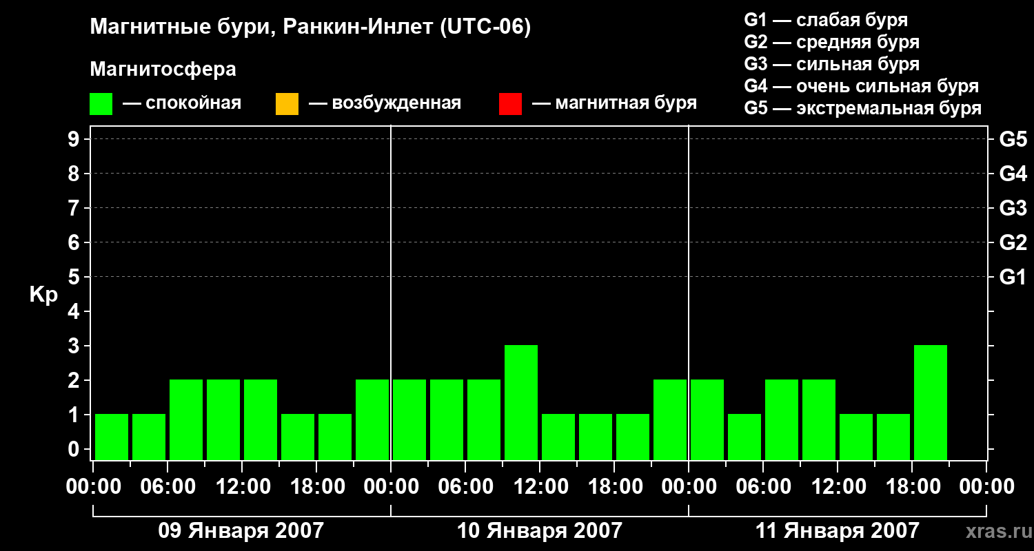 Магнитные бури в Ранкин-Инлете 11 января 2007 года
