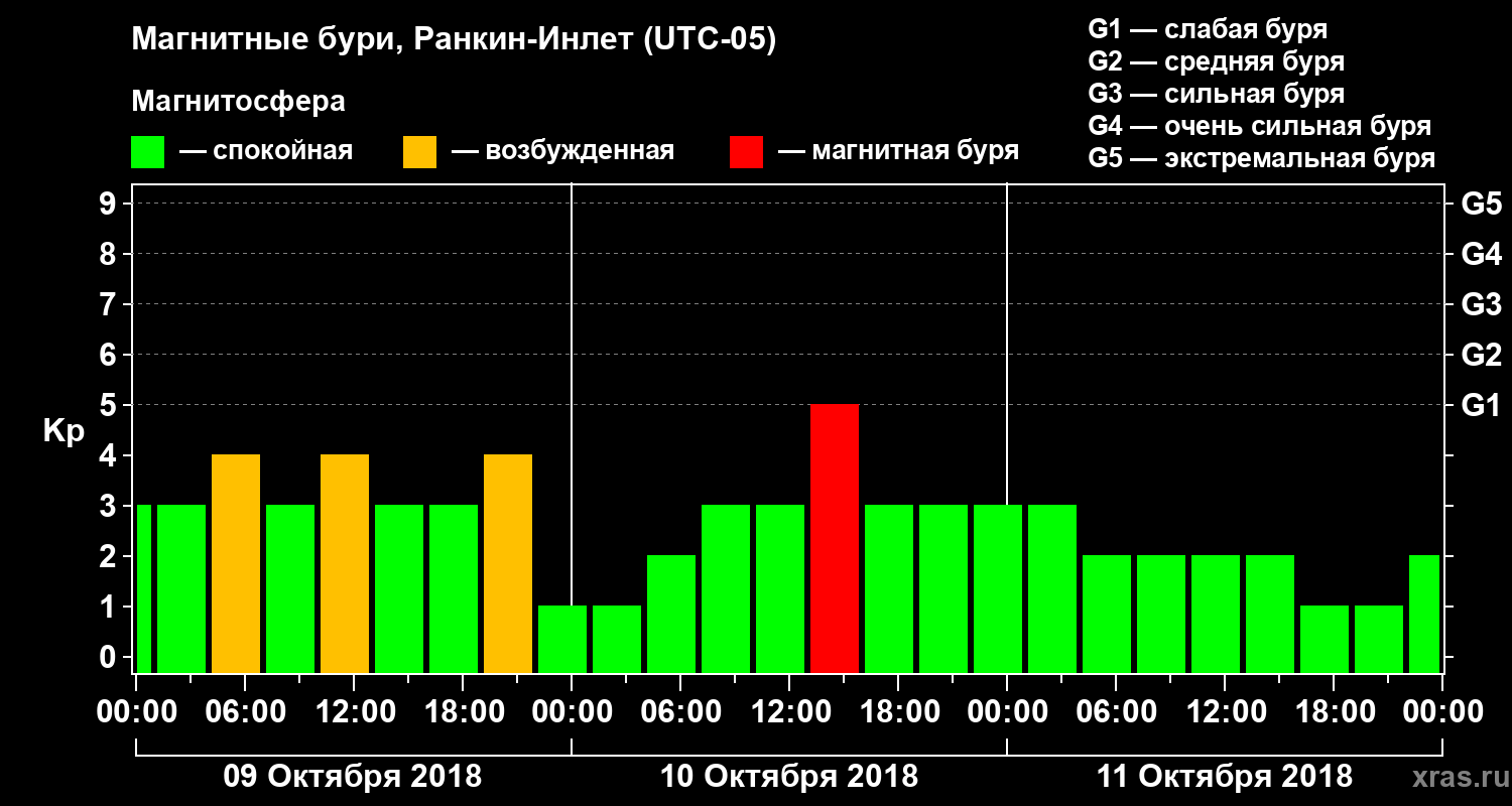 Магнитные бури в Ранкин-Инлете 11 октября 2018 года