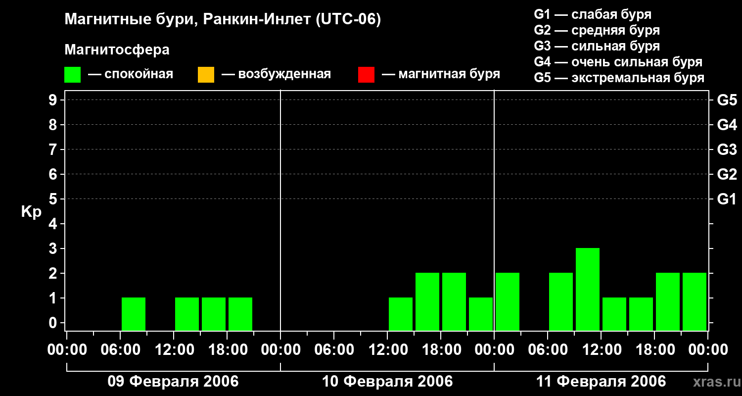 Магнитные бури в Ранкин-Инлете 11 февраля 2006 года