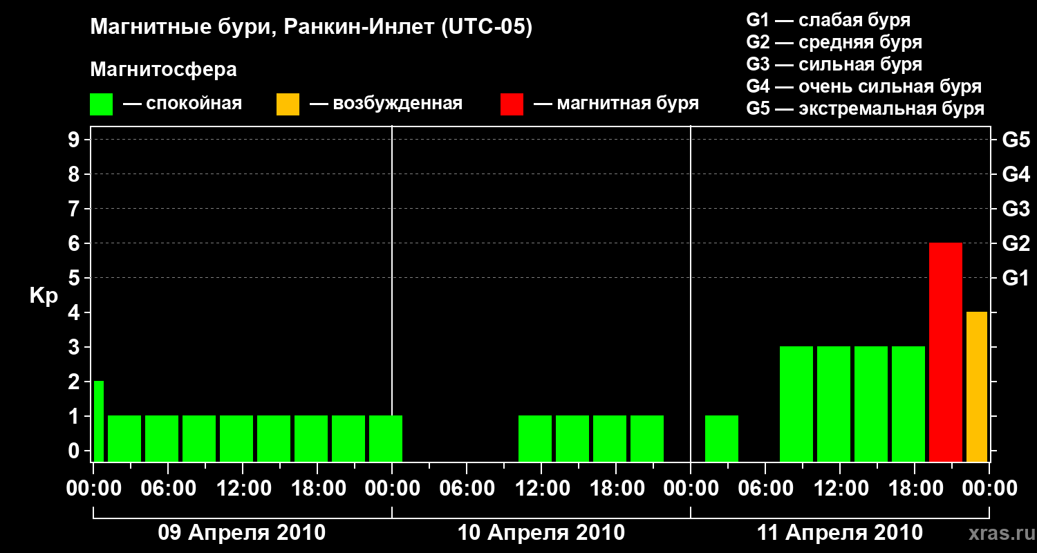 Магнитные бури в Ранкин-Инлете 11 апреля 2010 года