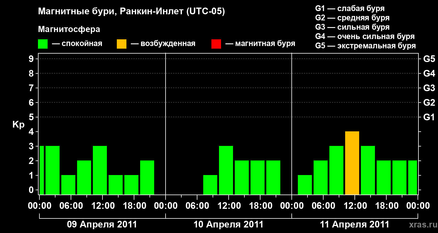Магнитные бури в Ранкин-Инлете 11 апреля 2011 года