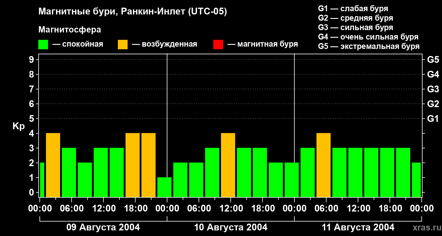 Магнитные бури в Ранкин-Инлете 11 августа 2004 года