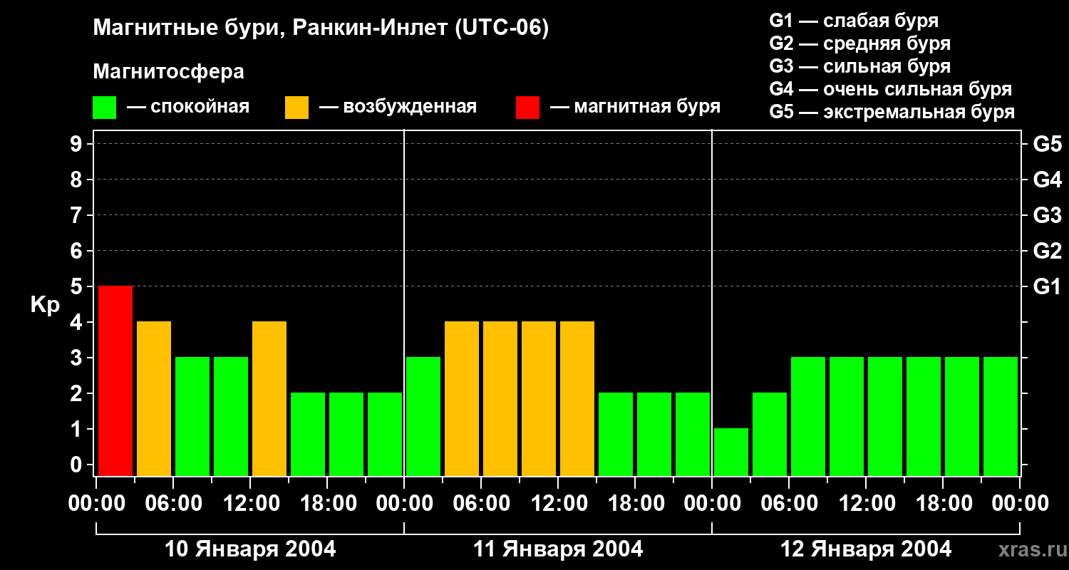 Магнитные бури в Ранкин-Инлете 12 января 2004 года