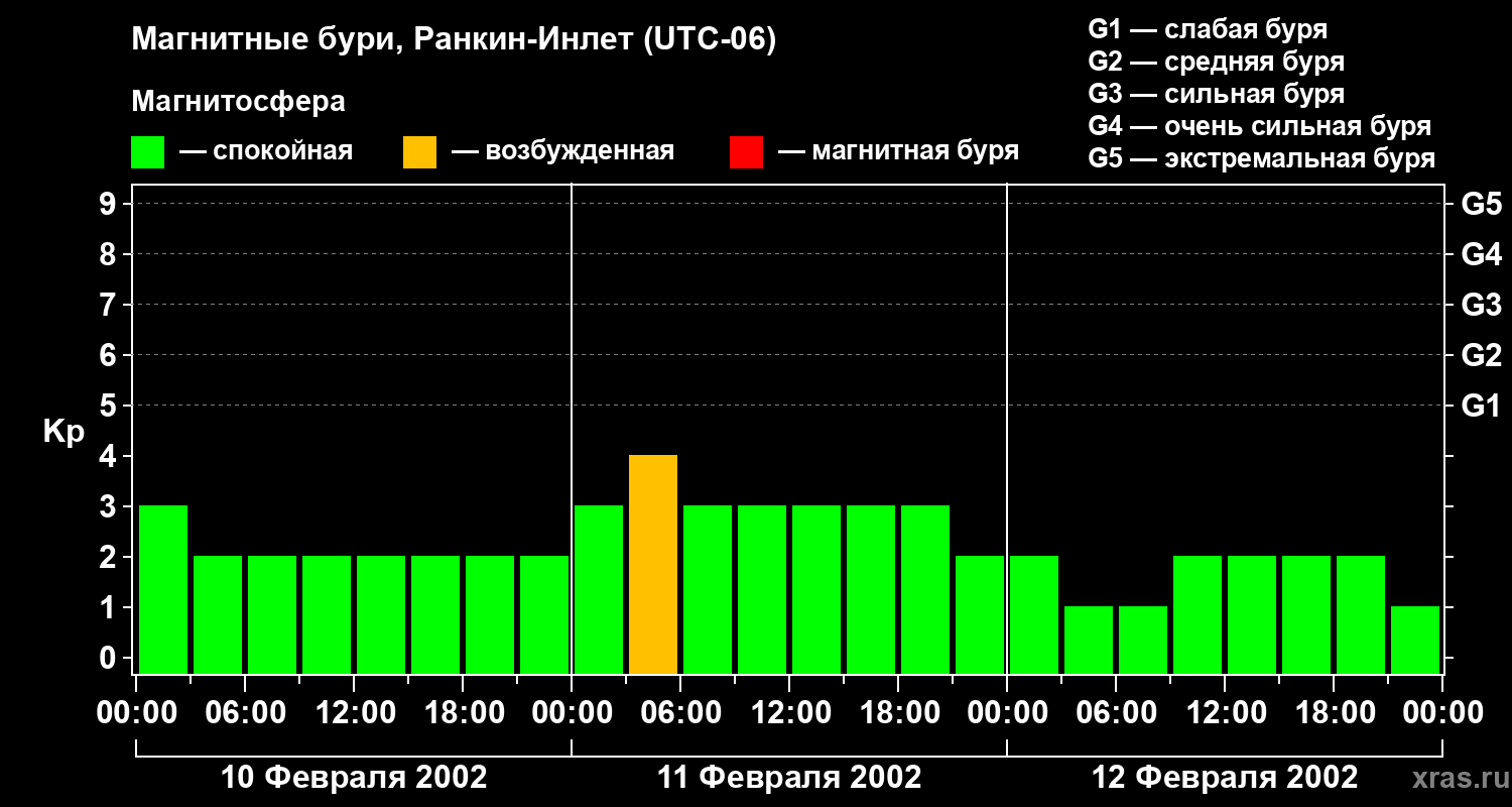 Магнитные бури в Ранкин-Инлете 12 февраля 2002 года