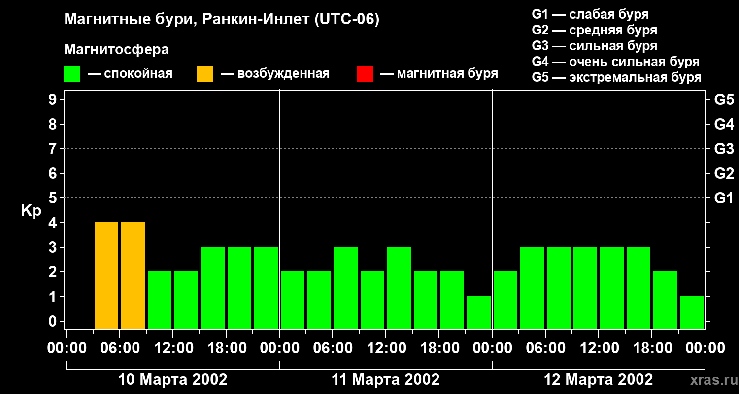 Магнитные бури в Ранкин-Инлете 12 марта 2002 года