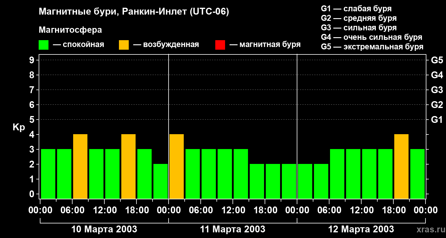 Магнитные бури в Ранкин-Инлете 12 марта 2003 года