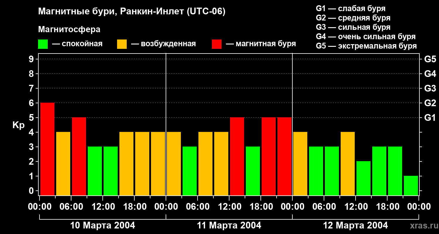 Магнитные бури в Ранкин-Инлете 12 марта 2004 года