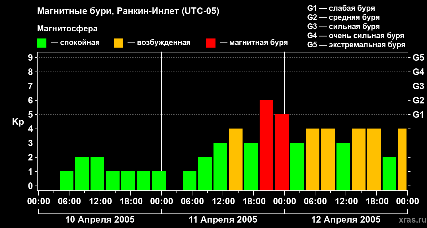 Магнитные бури в Ранкин-Инлете — 12 апреля 2005 года