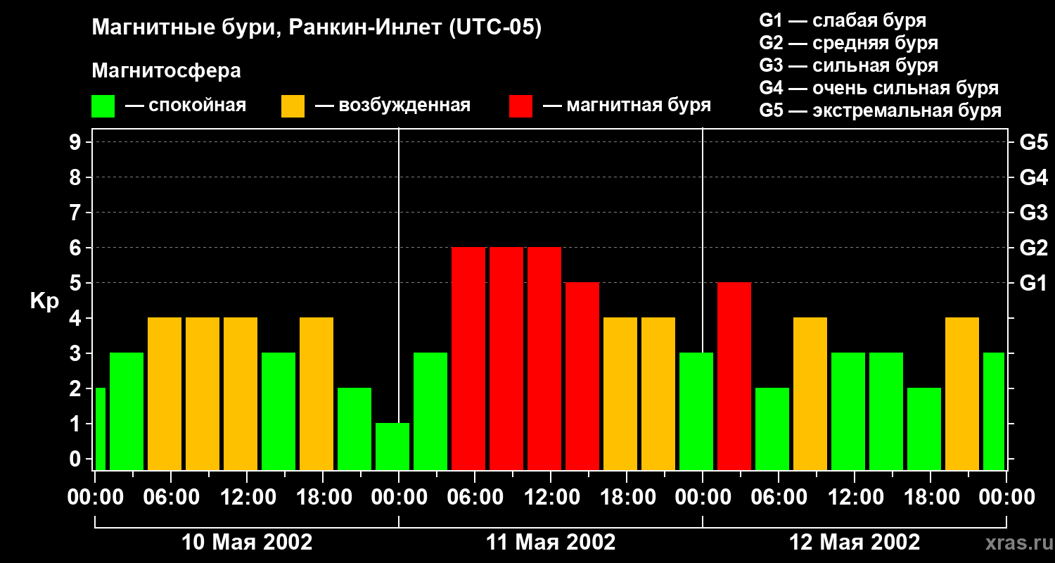 Магнитные бури в Ранкин-Инлете 12 мая 2002 года