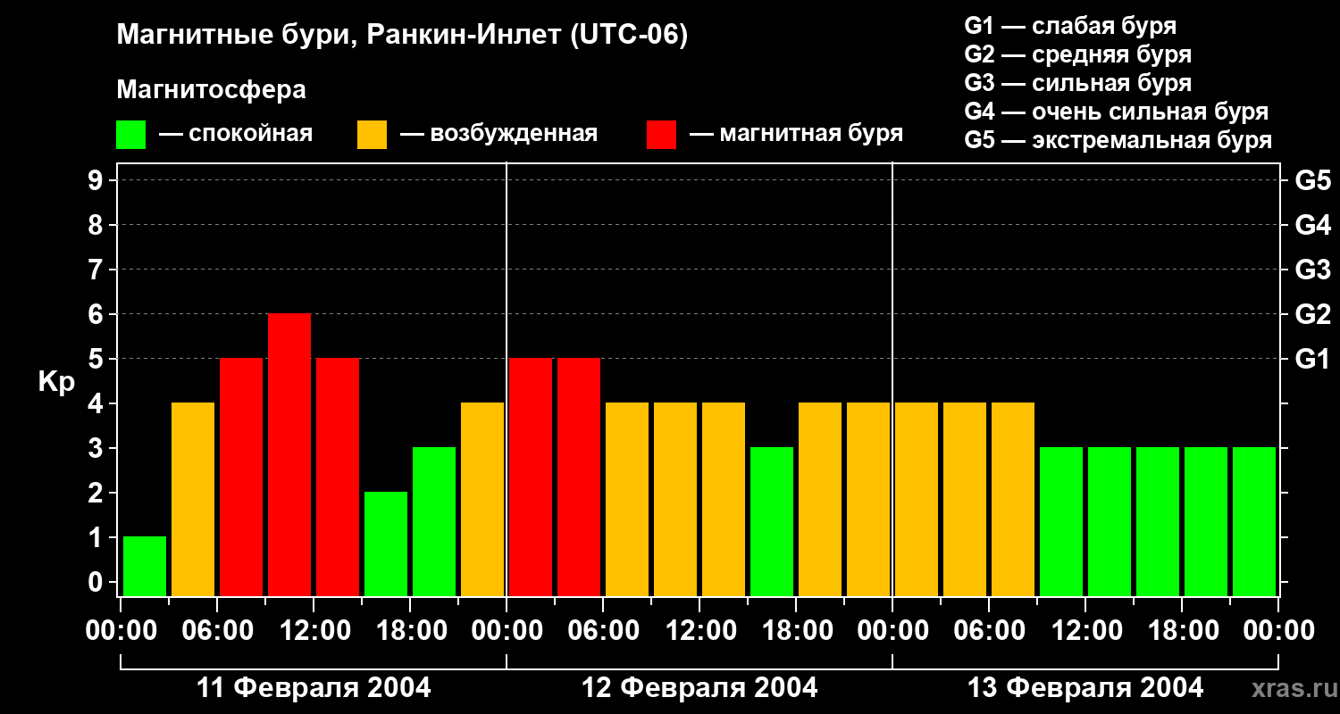 Магнитные бури в Ранкин-Инлете 13 февраля 2004 года