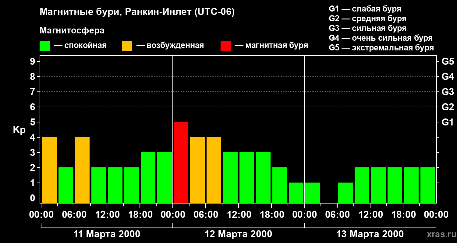 Магнитные бури в Ранкин-Инлете — 13 марта 2000 года