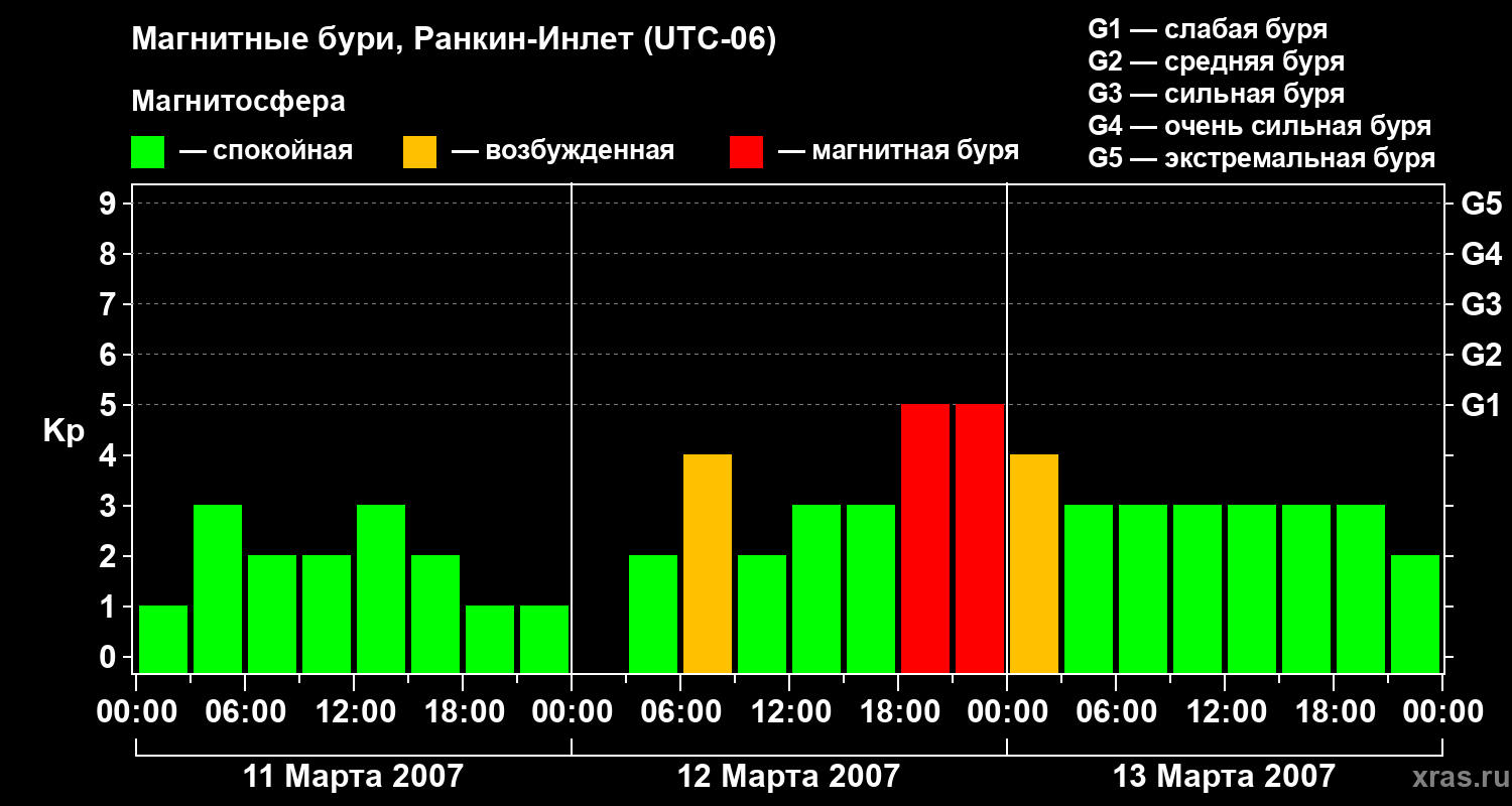 Магнитные бури в Ранкин-Инлете 13 марта 2007 года