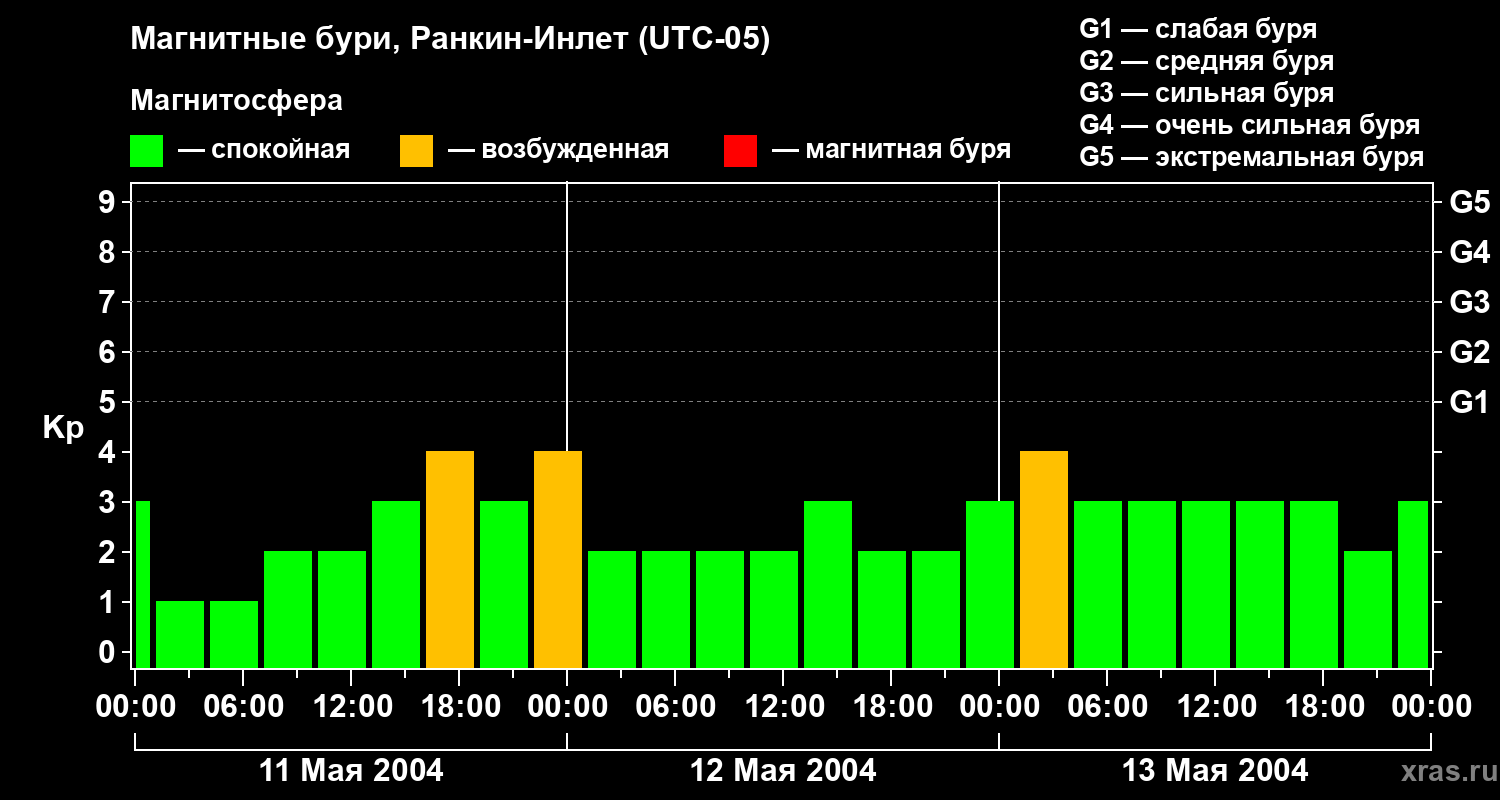 Магнитные бури в Ранкин-Инлете 13 мая 2004 года