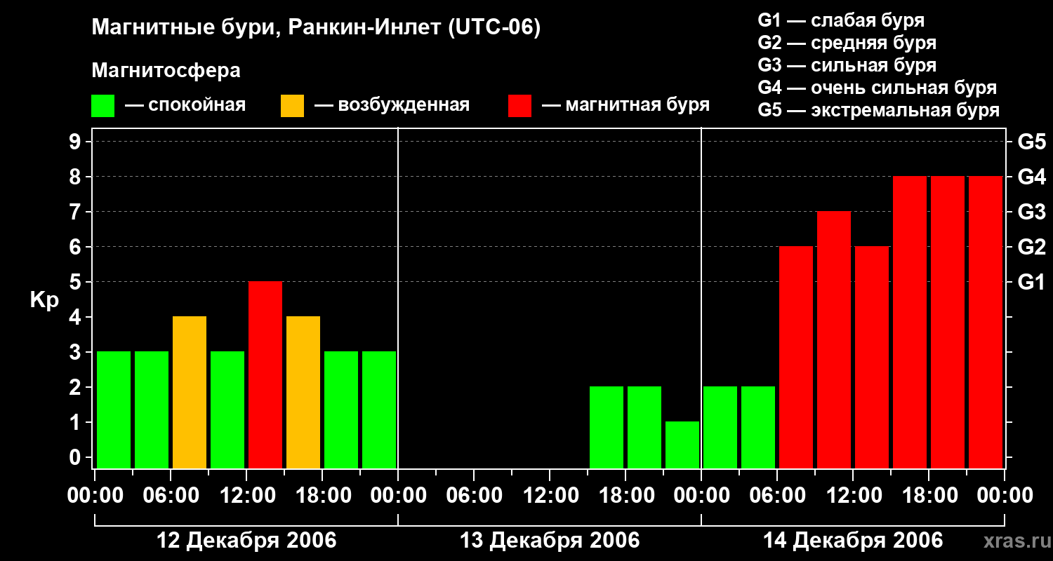 Магнитные бури в Ранкин-Инлете 14 декабря 2006 года