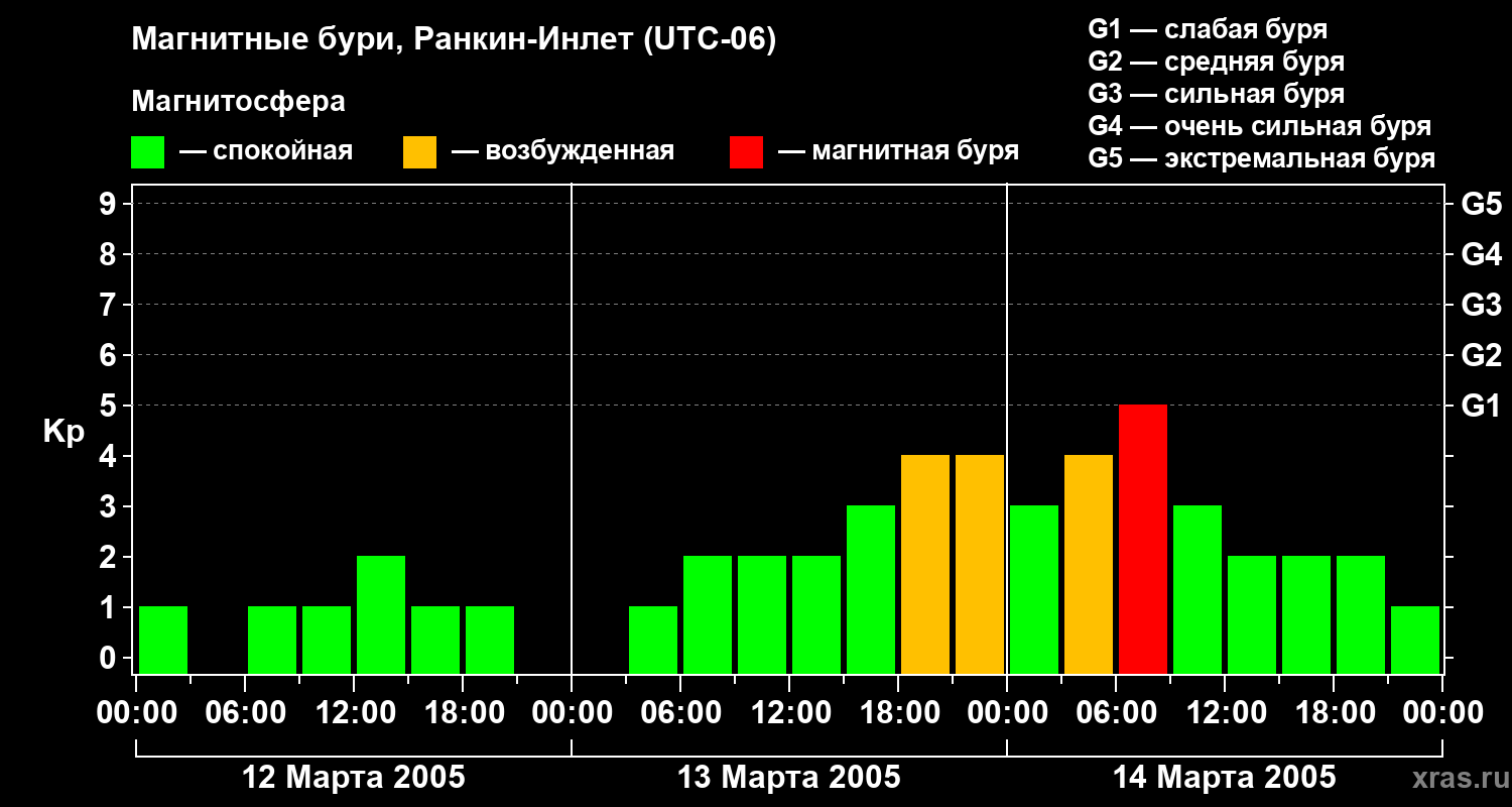 Магнитные бури в Ранкин-Инлете — 14 марта 2005 года