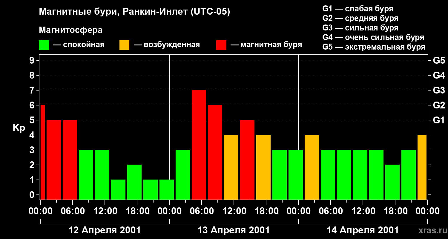 Магнитные бури в Ранкин-Инлете — 14 апреля 2001 года