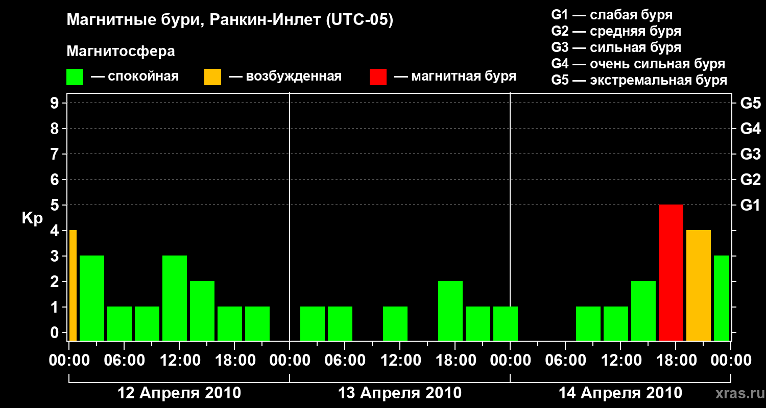 Магнитные бури в Ранкин-Инлете 14 апреля 2010 года