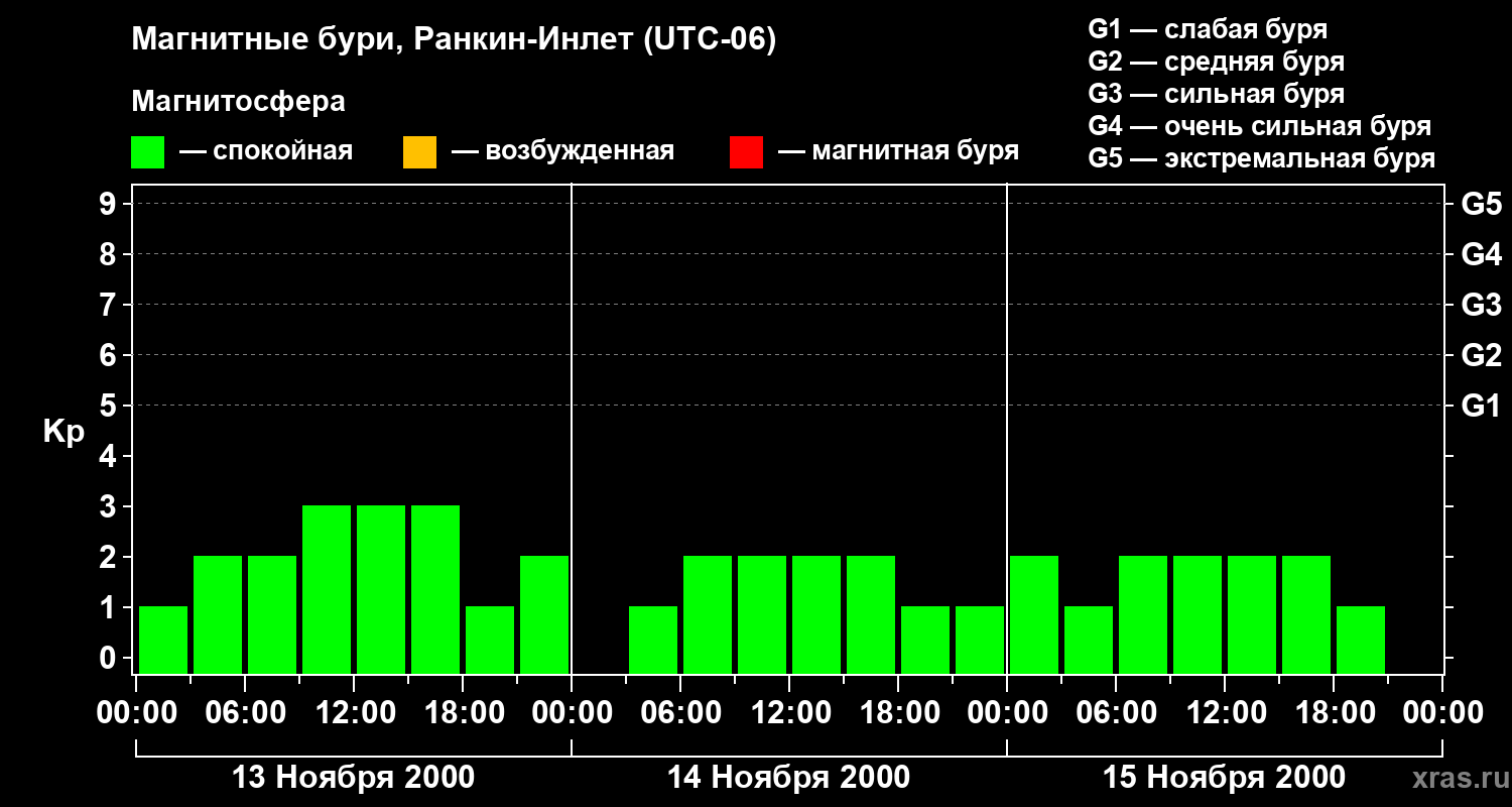 Магнитные бури в Ранкин-Инлете 15 ноября 2000 года
