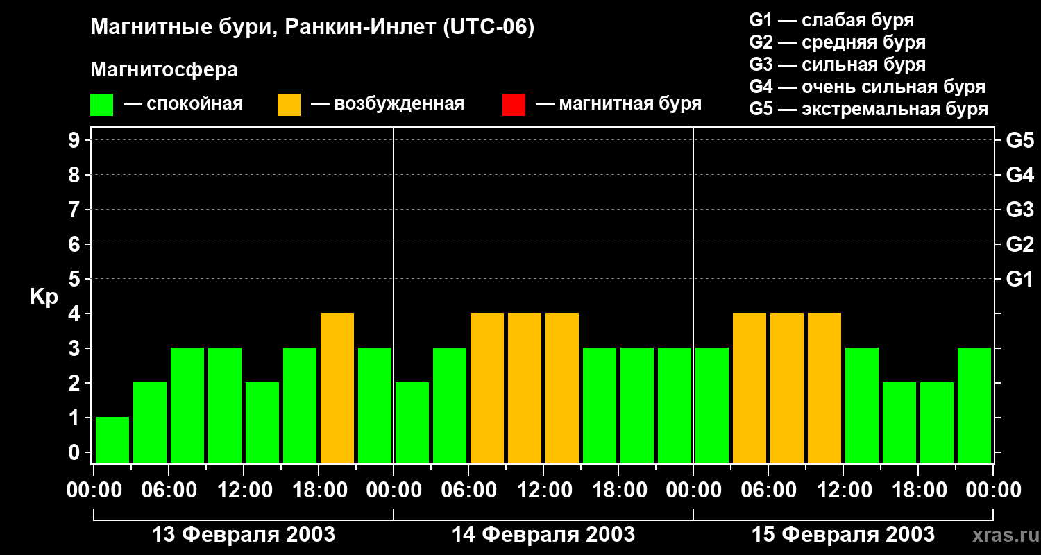Магнитные бури в Ранкин-Инлете — 15 февраля 2003 года