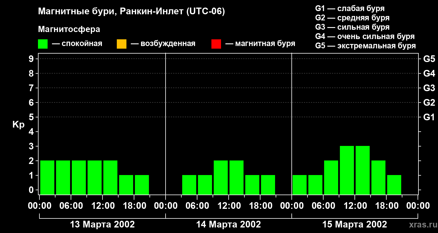 Магнитные бури в Ранкин-Инлете в марте 2002 года
