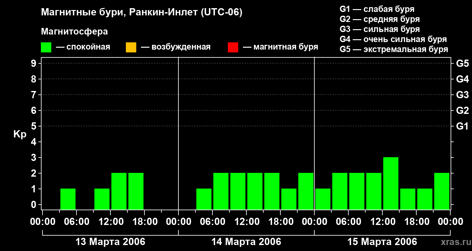 Магнитные бури в Ранкин-Инлете в марте 2006 года