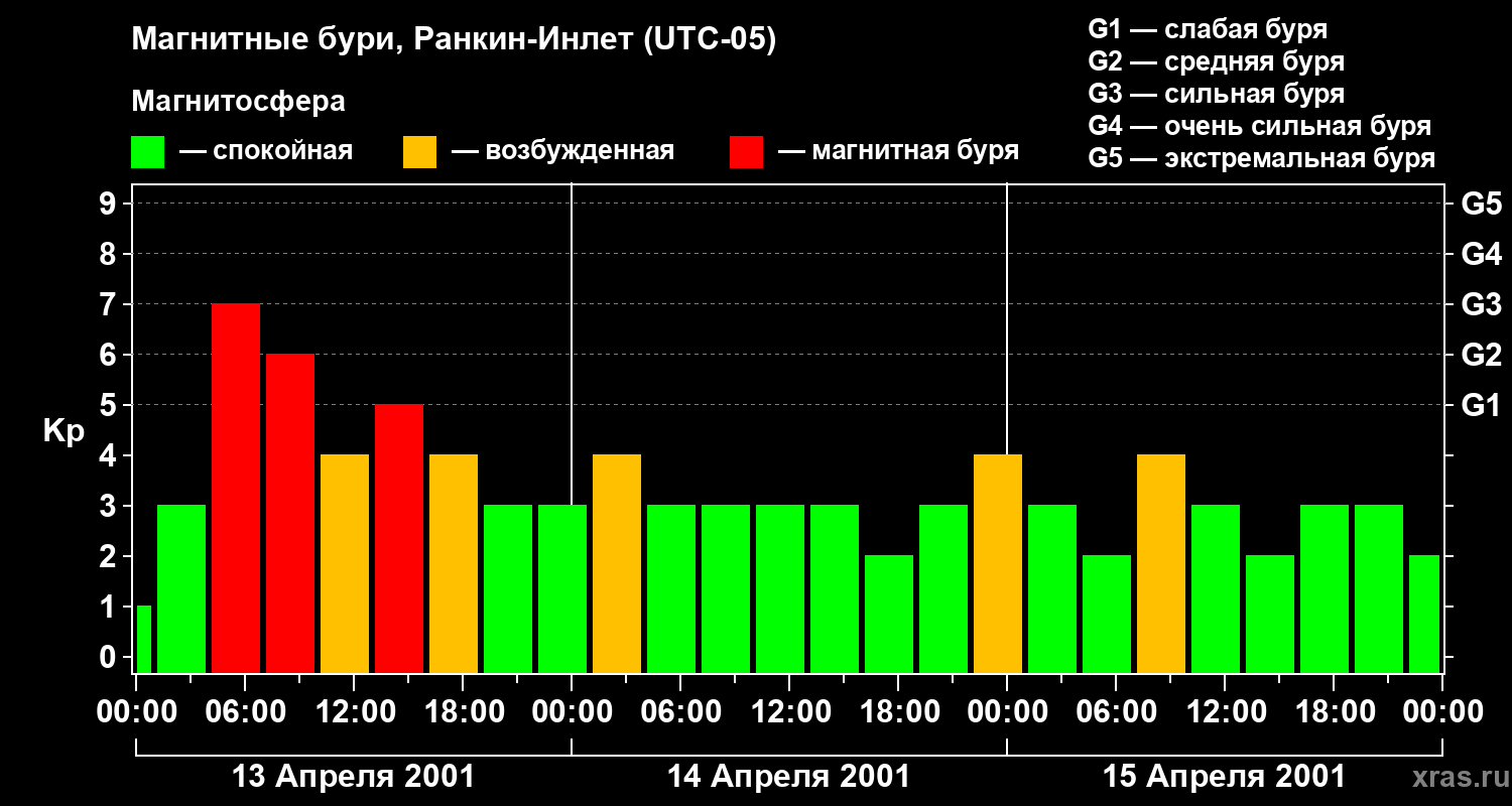 Магнитные бури в Ранкин-Инлете — 15 апреля 2001 года