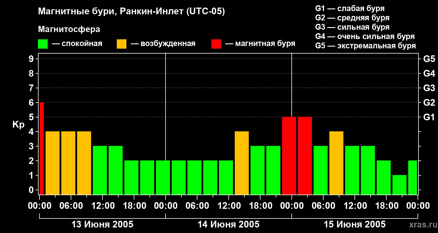 Магнитные бури в Ранкин-Инлете 15 июня 2005 года