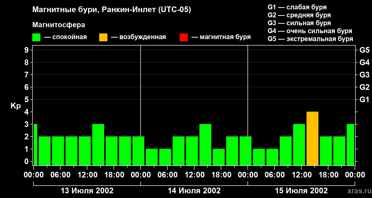Магнитные бури в Ранкин-Инлете 15 июля 2002 года