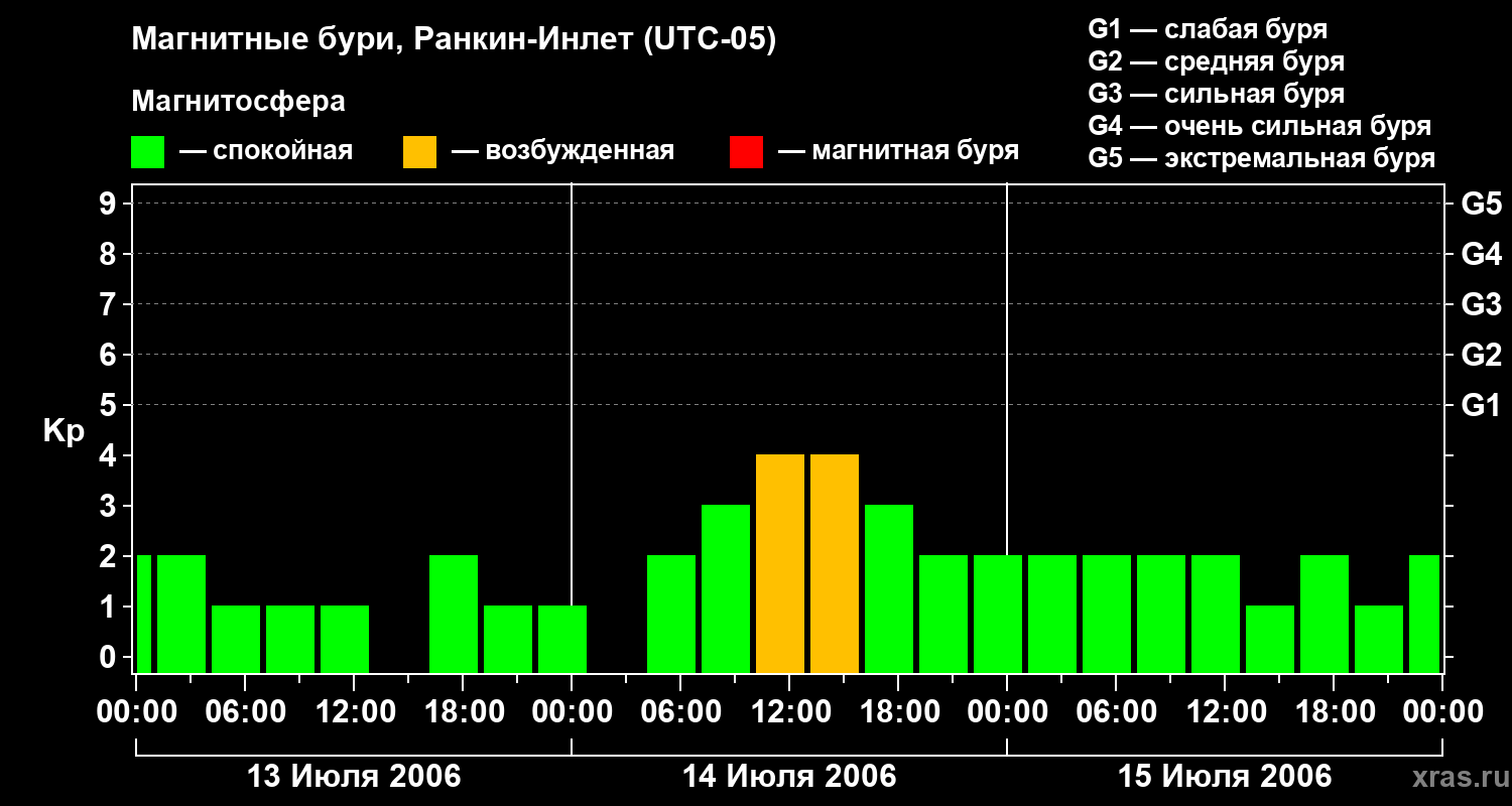 Магнитные бури в Ранкин-Инлете 15 июля 2006 года