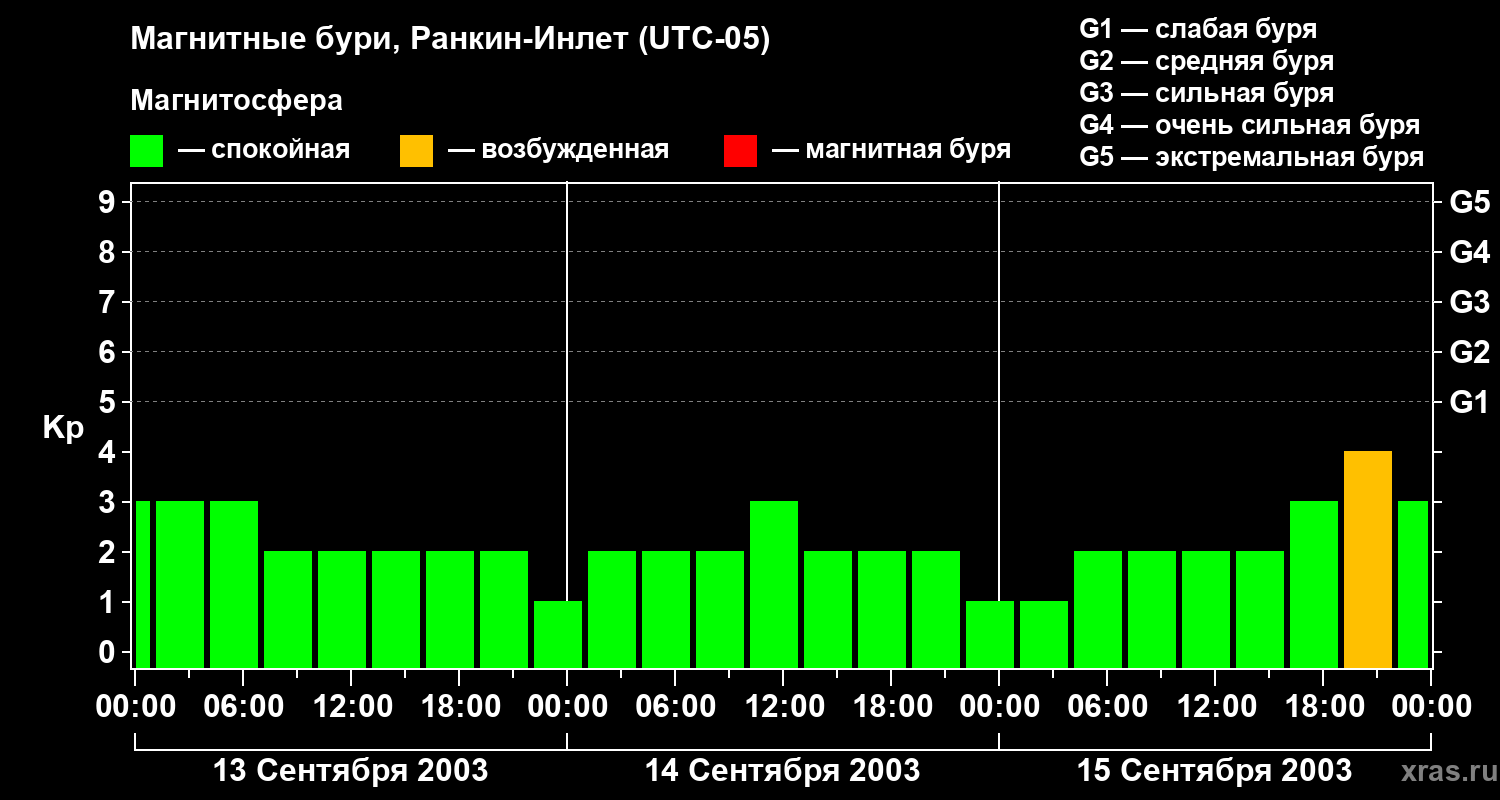 Магнитные бури в Ранкин-Инлете — 15 сентября 2003 года