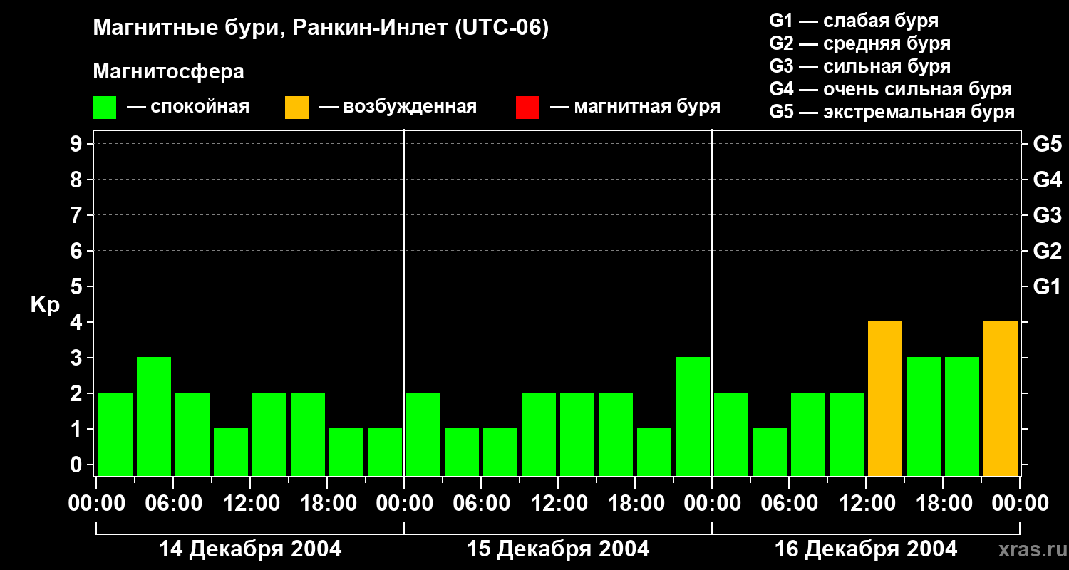 Магнитные бури в Ранкин-Инлете в декабре 2004 года