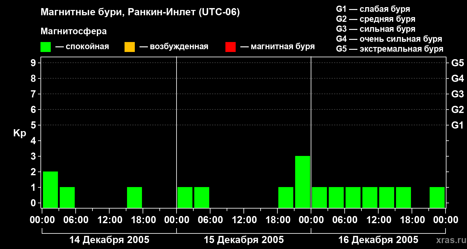 Магнитные бури в Ранкин-Инлете в декабре 2005 года