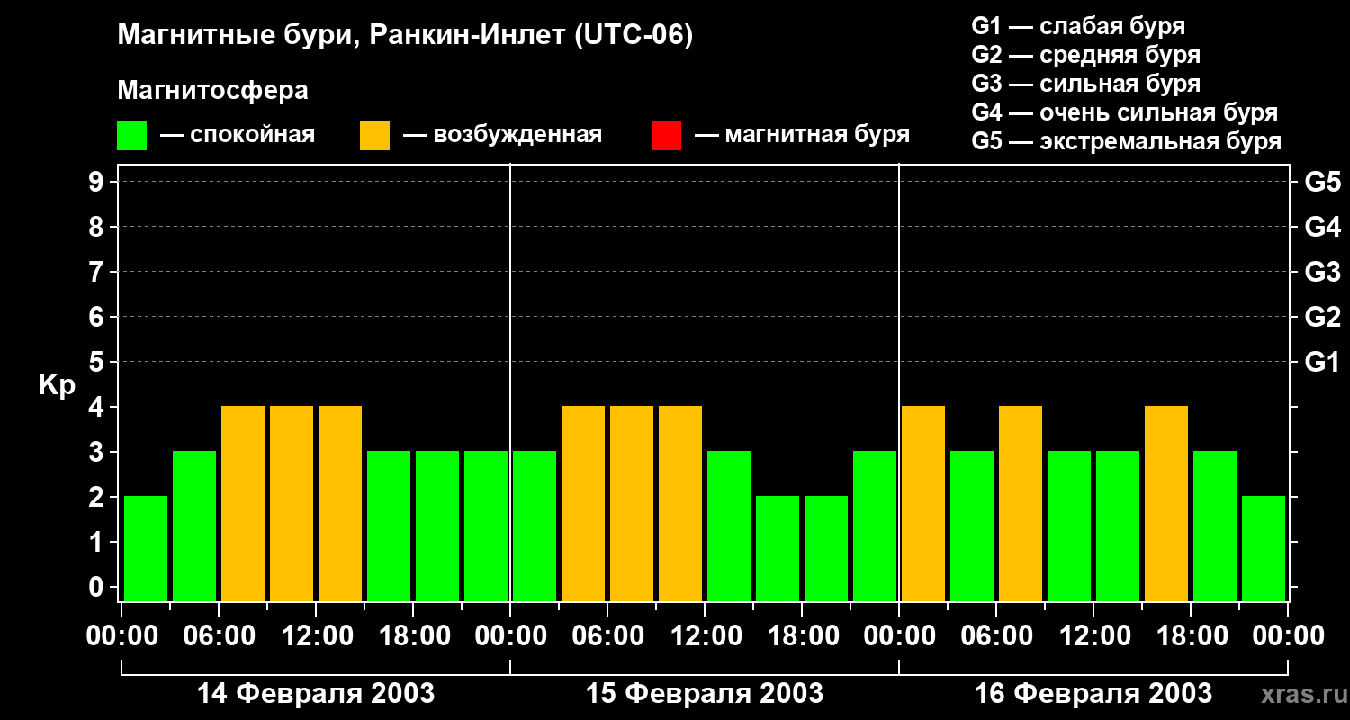 Магнитные бури в Ранкин-Инлете — 16 февраля 2003 года