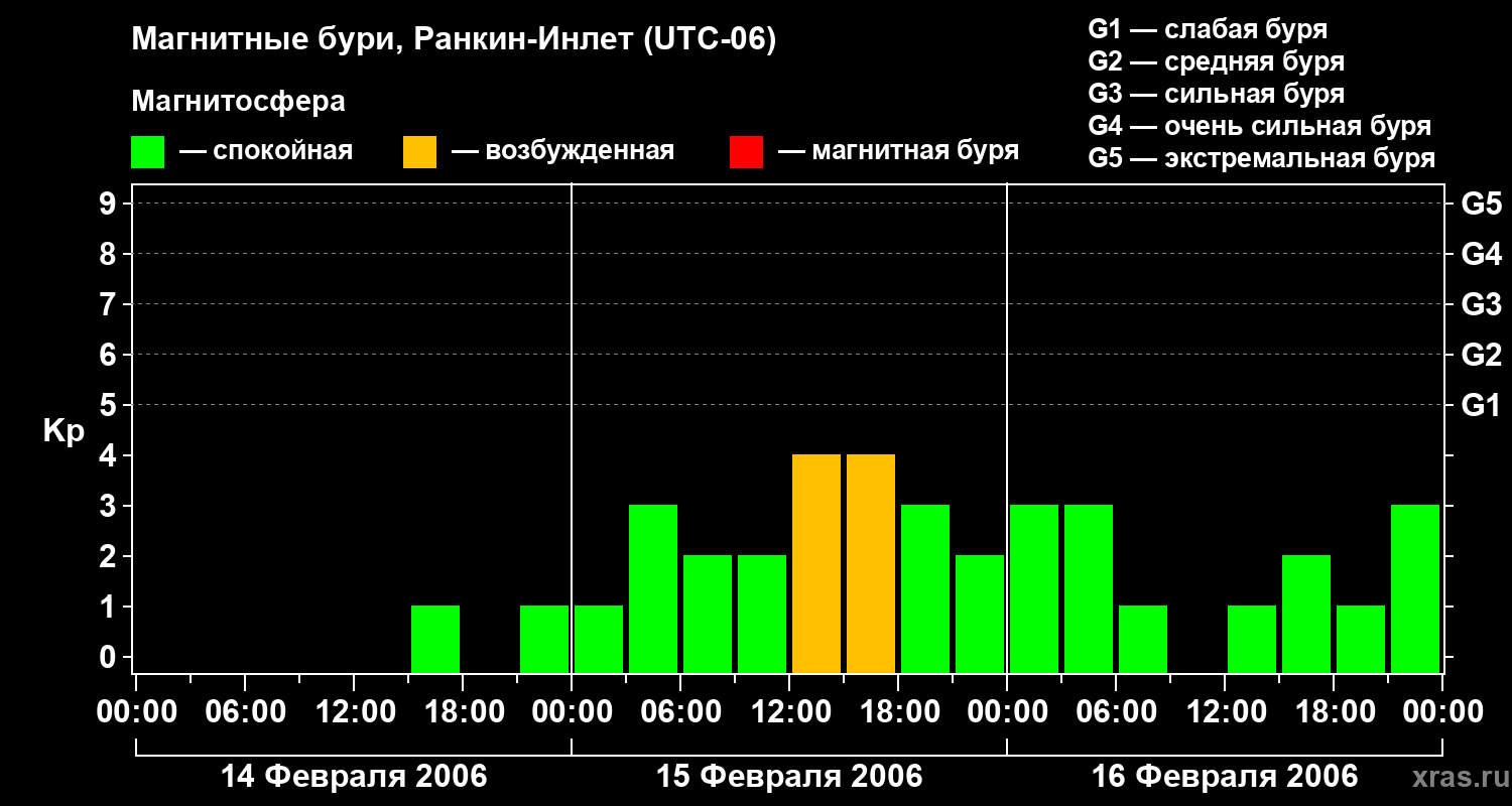 Магнитные бури в Ранкин-Инлете 16 февраля 2006 года