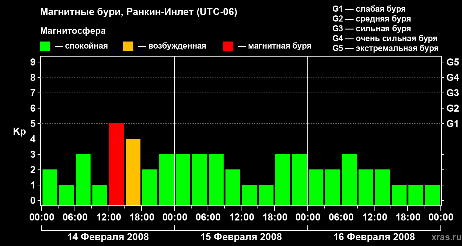 Магнитные бури в Ранкин-Инлете 16 февраля 2008 года