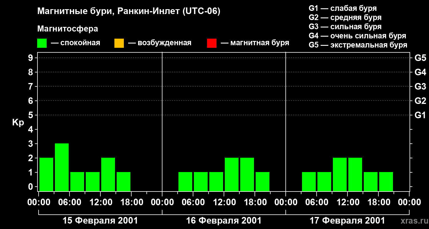Магнитные бури в Ранкин-Инлете 17 февраля 2001 года