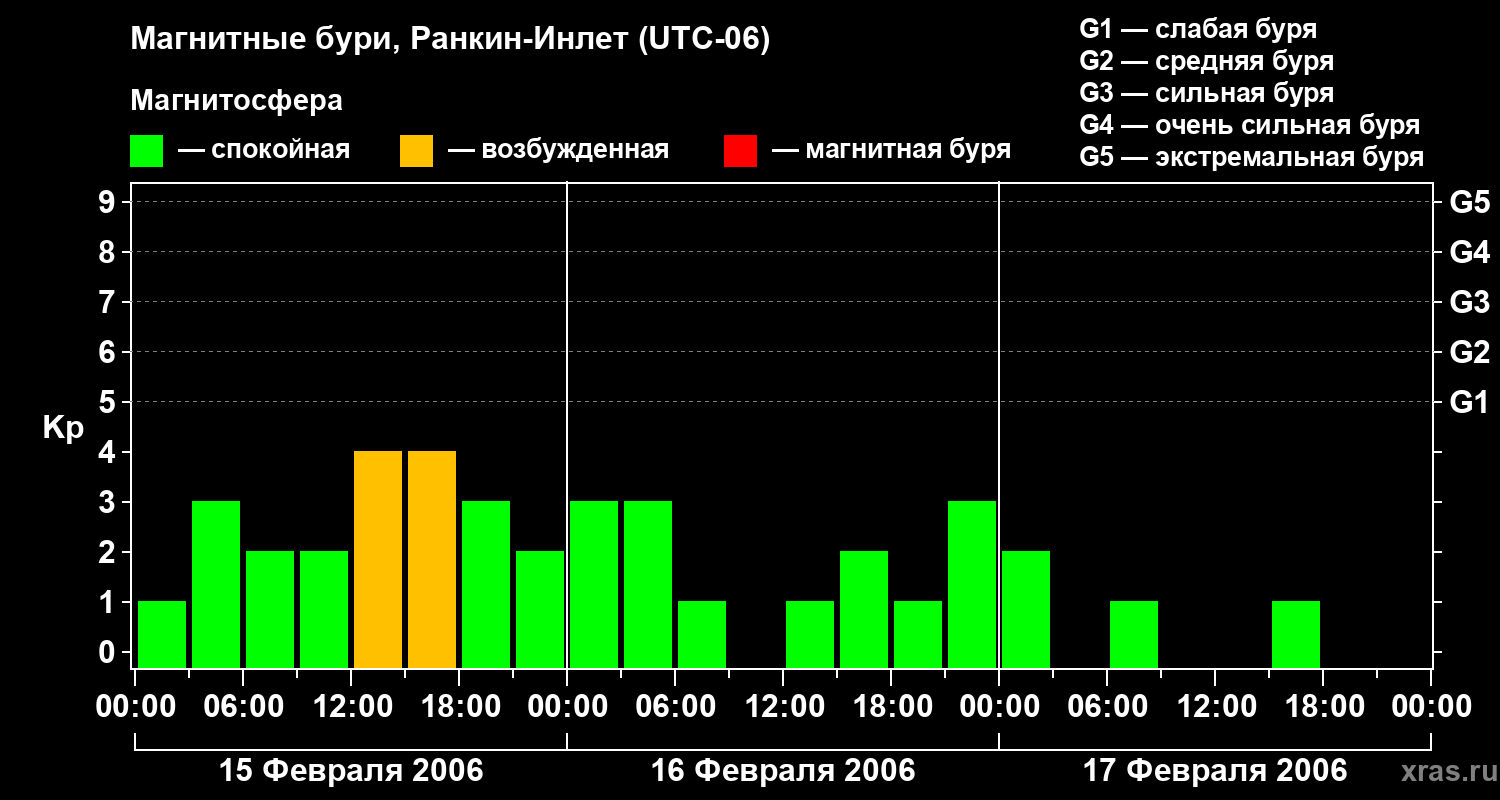 Магнитные бури в Ранкин-Инлете 17 февраля 2006 года
