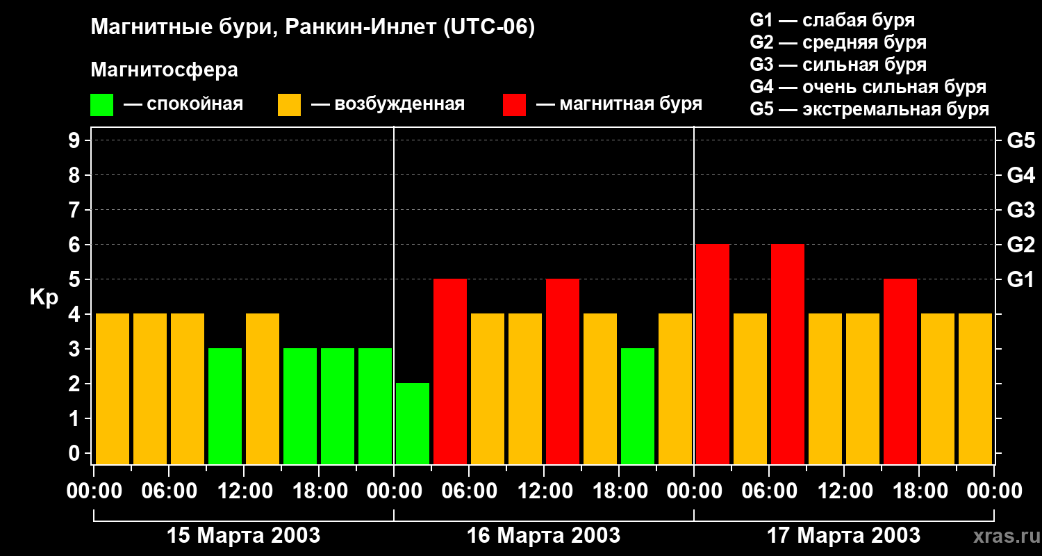 Магнитные бури в Ранкин-Инлете — 17 марта 2003 года