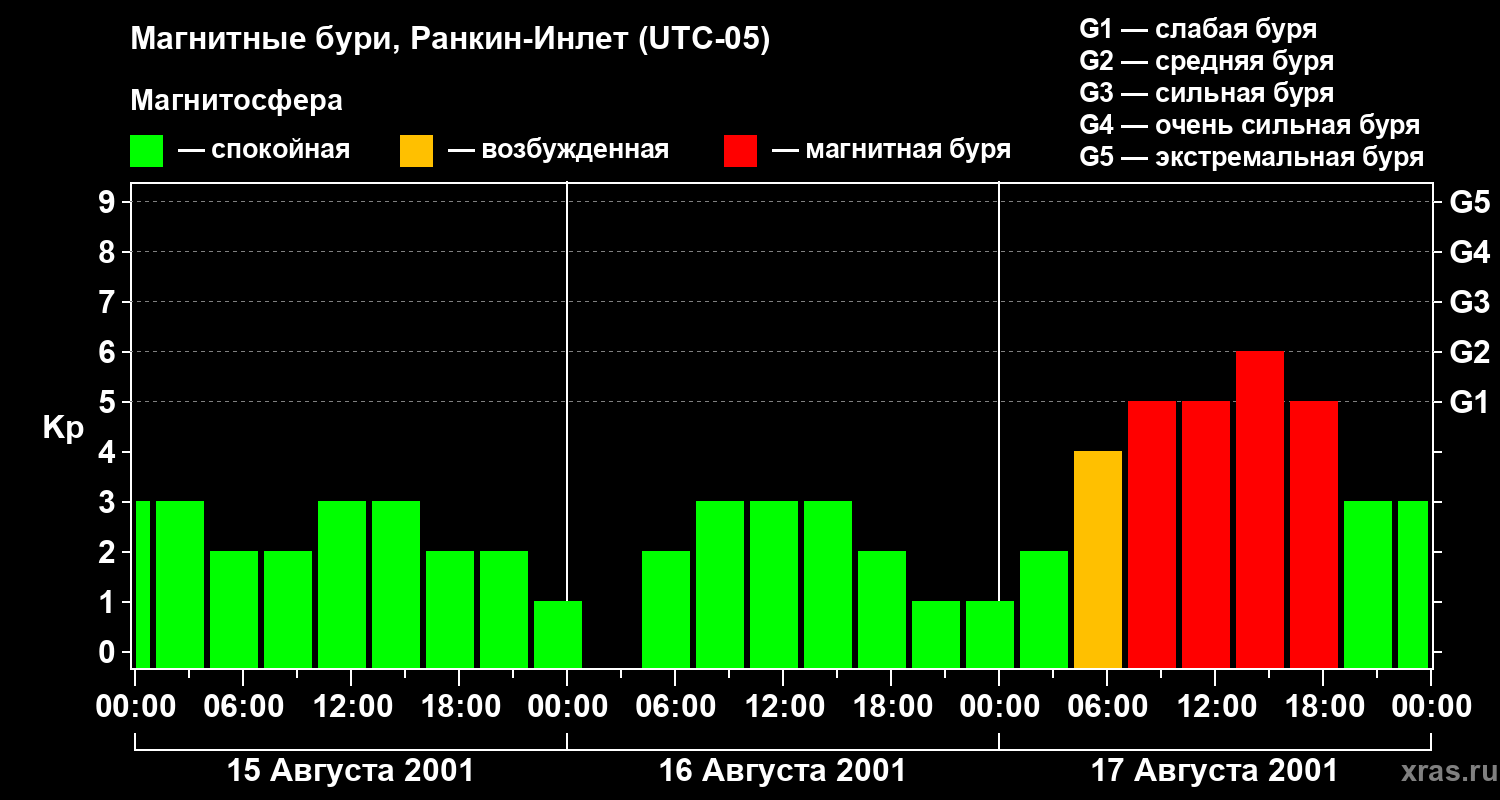 Магнитные бури в Ранкин-Инлете 17 августа 2001 года