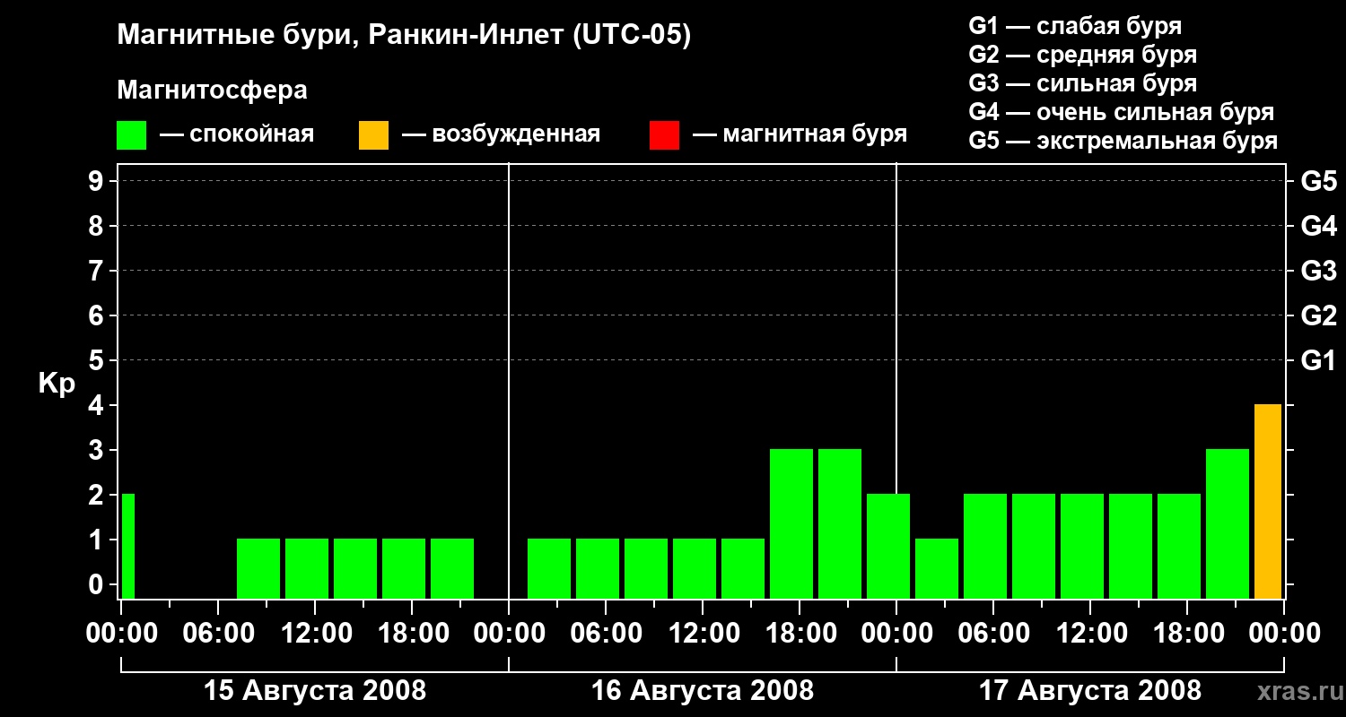 Магнитные бури в Ранкин-Инлете — 17 августа 2008 года