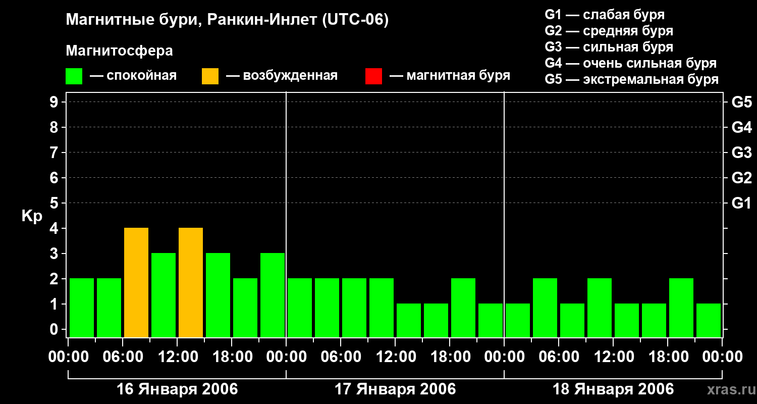 Магнитные бури в Ранкин-Инлете в январе 2006 года