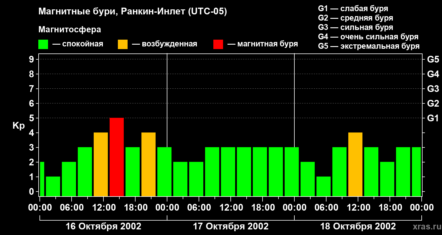 Магнитные бури в Ранкин-Инлете 18 октября 2002 года