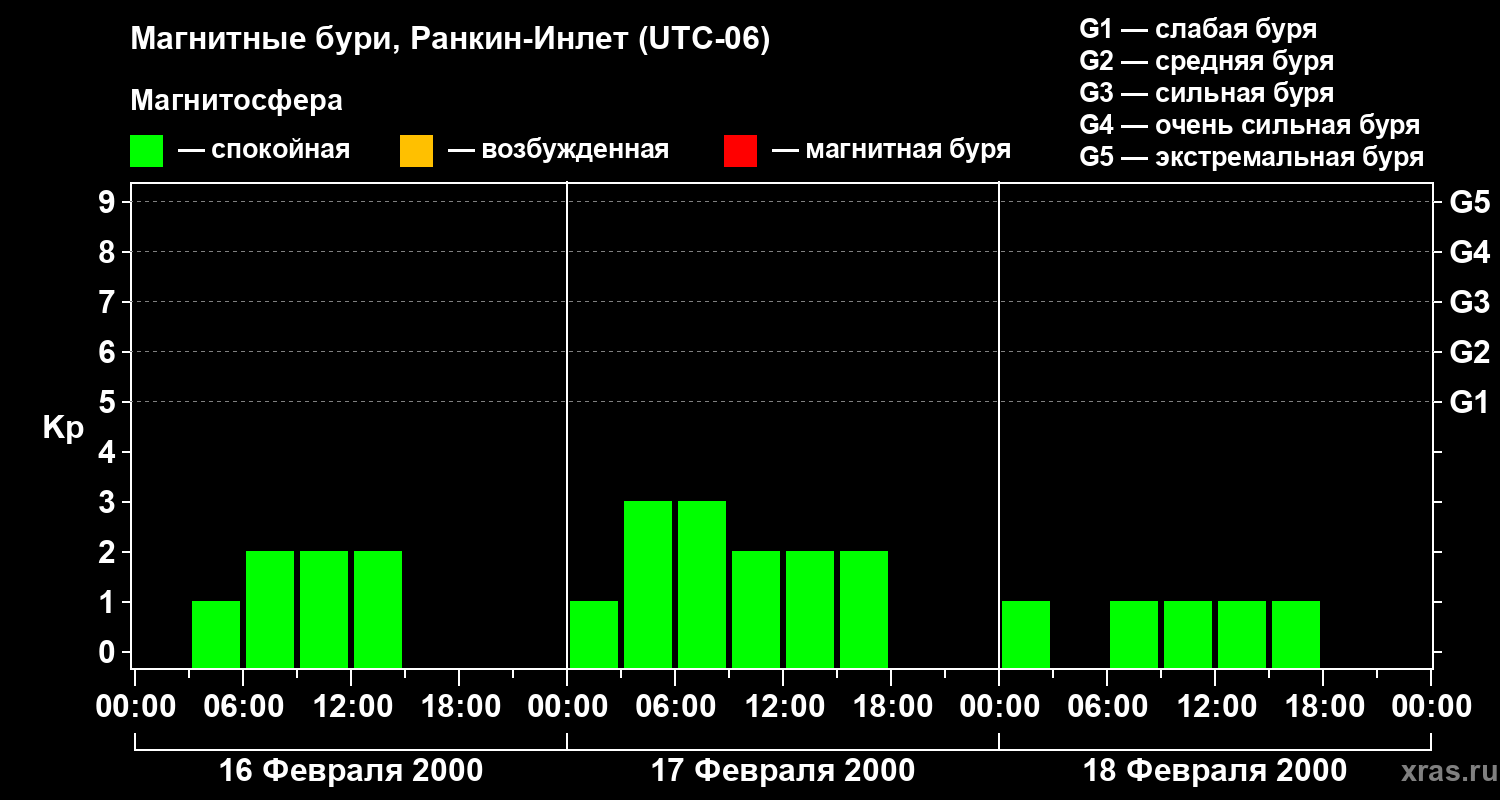Магнитные бури в Ранкин-Инлете 18 февраля 2000 года