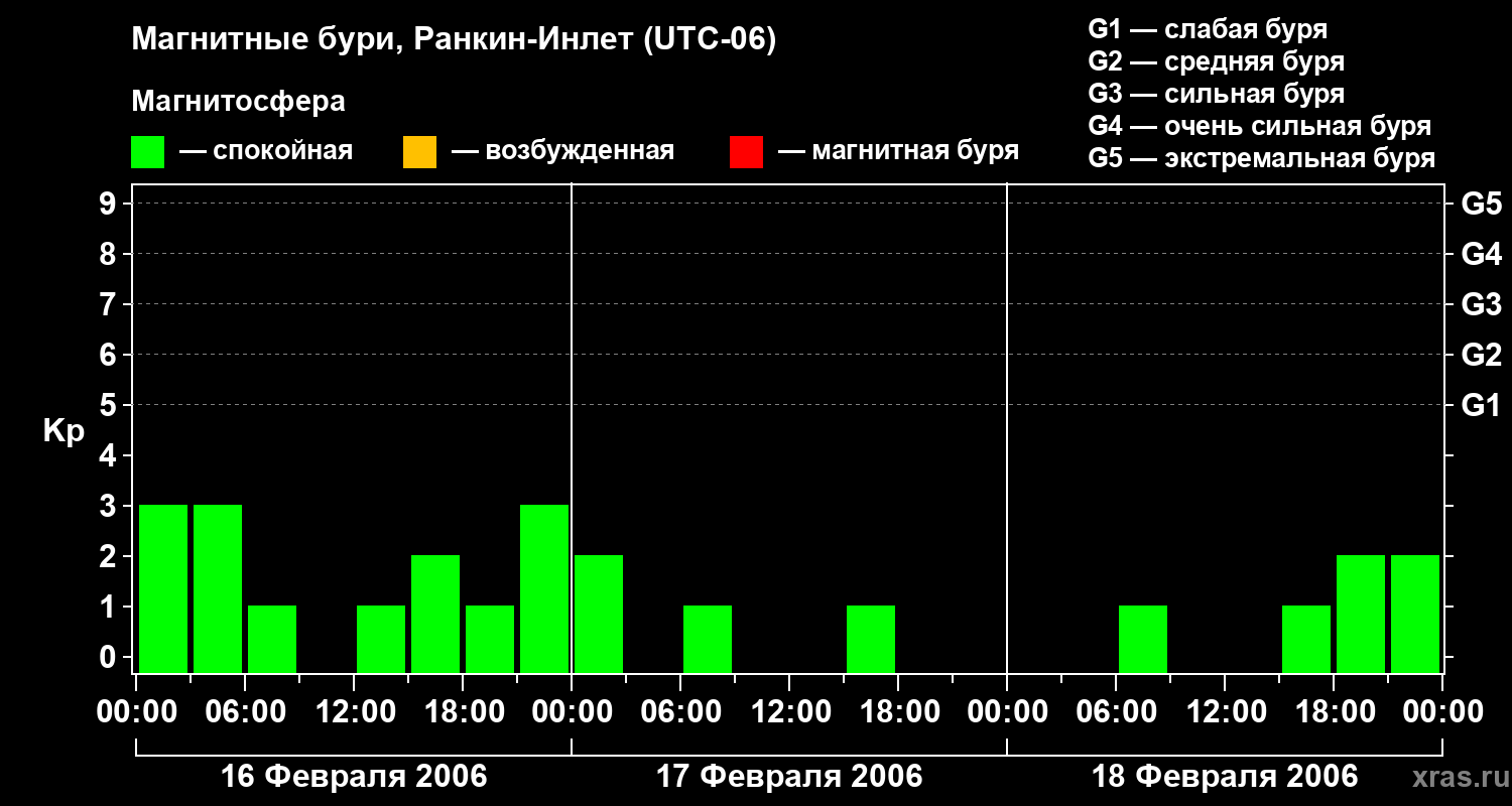 Магнитные бури в Ранкин-Инлете в феврале 2006 года