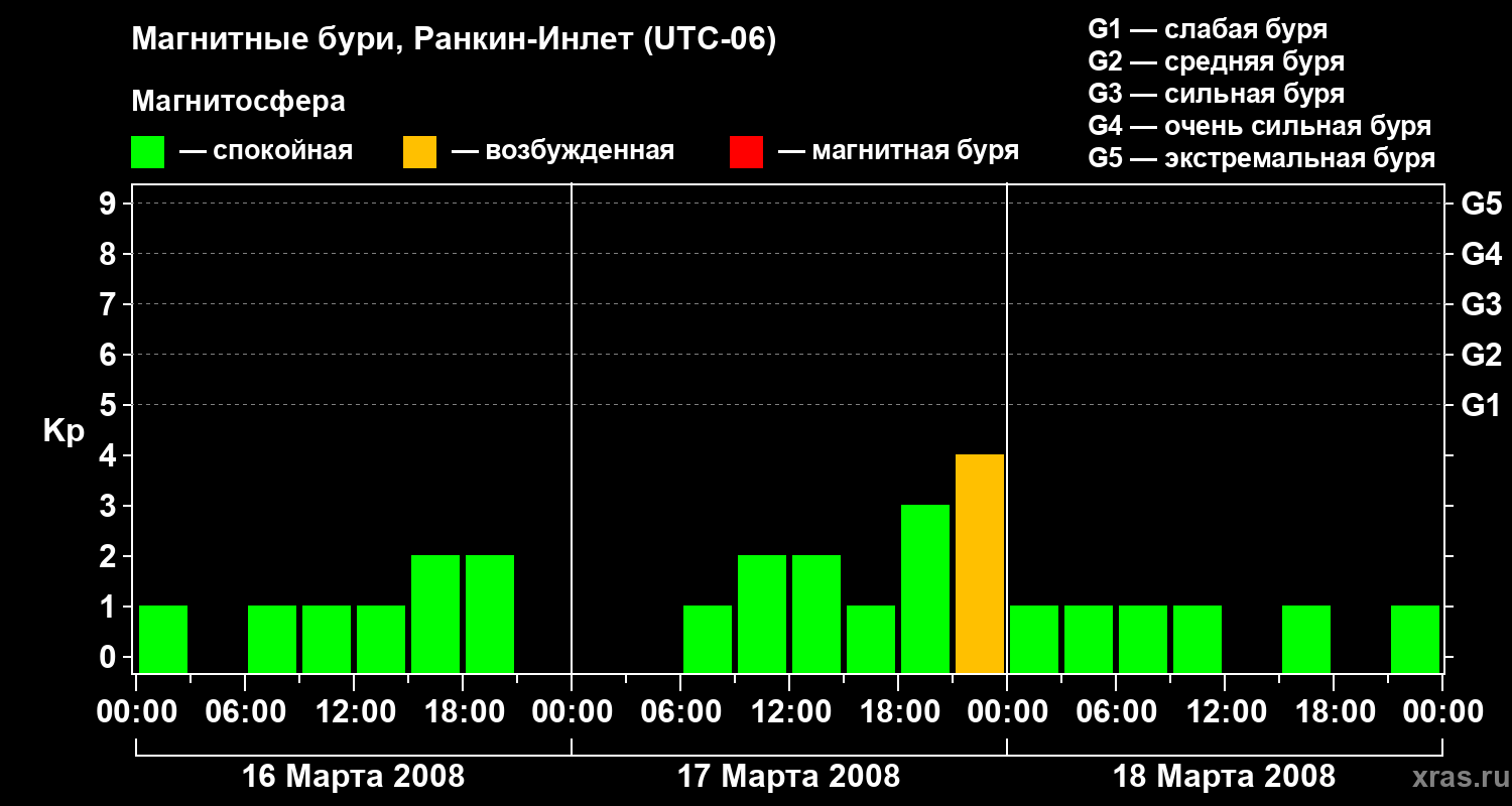Магнитные бури в Ранкин-Инлете 18 марта 2008 года