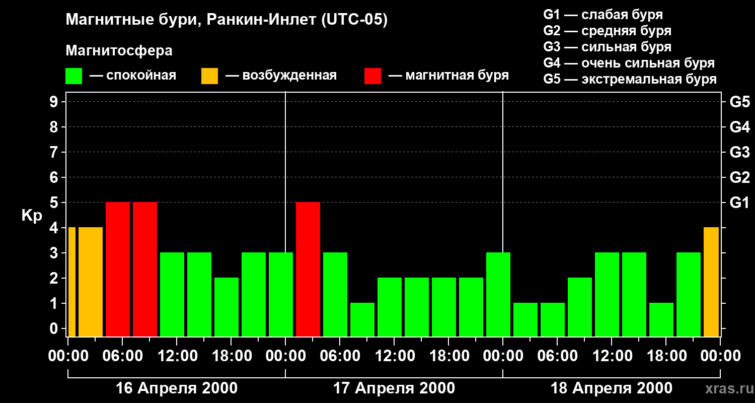 Магнитные бури в Ранкин-Инлете в апреле 2000 года